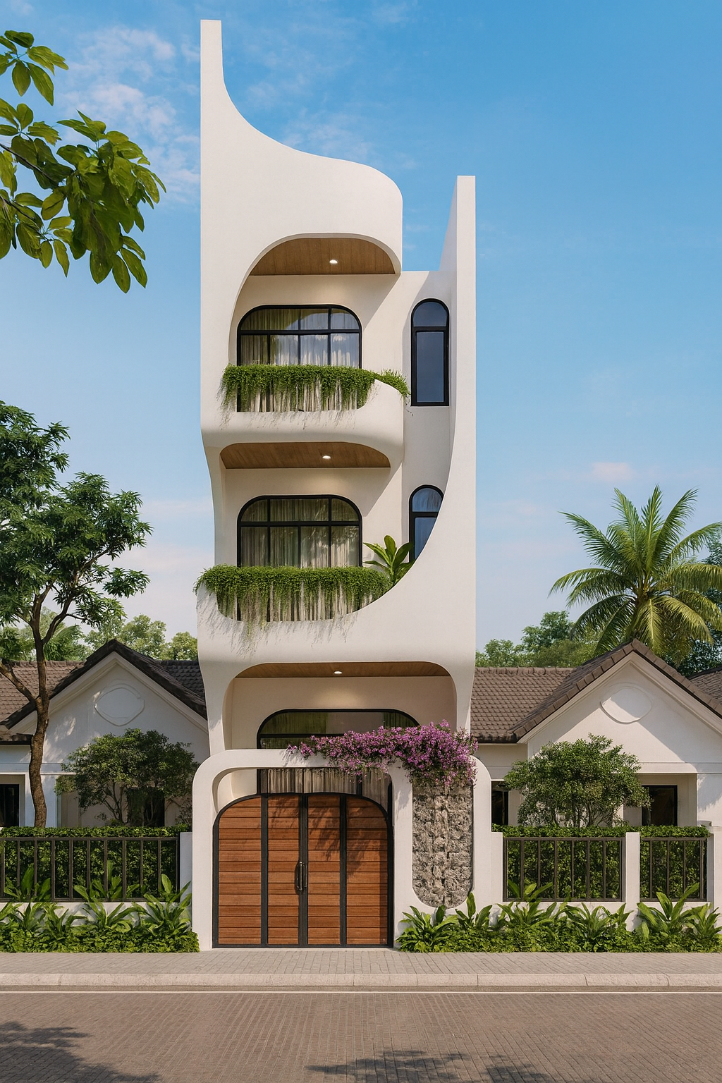 Phong cách kiến trúc: Nhà phố đơn giản sẽ rẻ hơn biệt thự tân cổ điển, nhà mái thái hay nhà có nhiều chi tiết phức tạp.